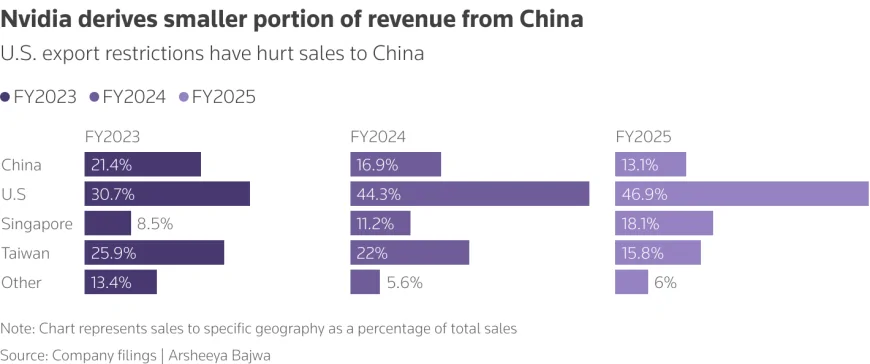 এনভিডিয়া, বিশ্বের অন্যতম শীর্ষ এআই চিপ নির্মাতা, তাদের আসন্ন ত্রৈমাসিক আয়ের প্রতিবেদনে চীনের বাজারে চলমান বাণিজ্য যুদ্ধের প্রভাব তুলে ধরতে যাচ্ছে। যুক্তরাষ্ট্র সরকারের সাথে রপ্তানি লাইসেন্স বাবদ বিক্রির ১৫% দেওয়ার চুক্তির পর, এবার চীনের পক্ষ থেকে চিপ কেনা কমানোর ইঙ্গিত এসেছে।